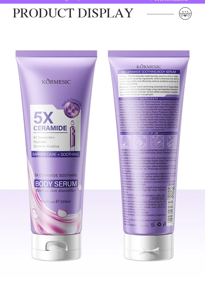 HALAL Bpom 200ml 5x Ceramide Soothing 7X Vitamin Brightening Body Serum Private Label Custom OEM Wholesale